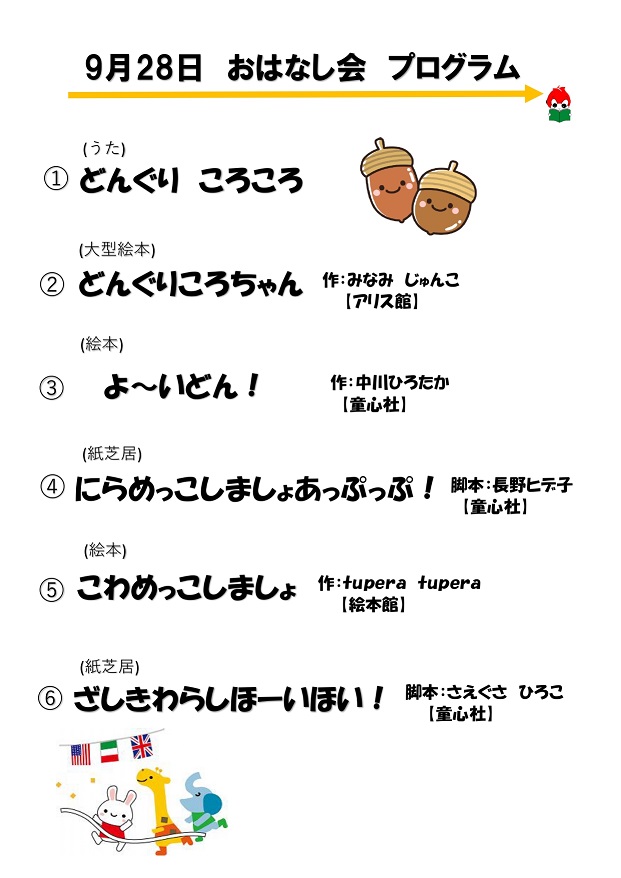 9月のおはなし会は、読み聞かせボランティアの泉谷さんと佐々田さん、