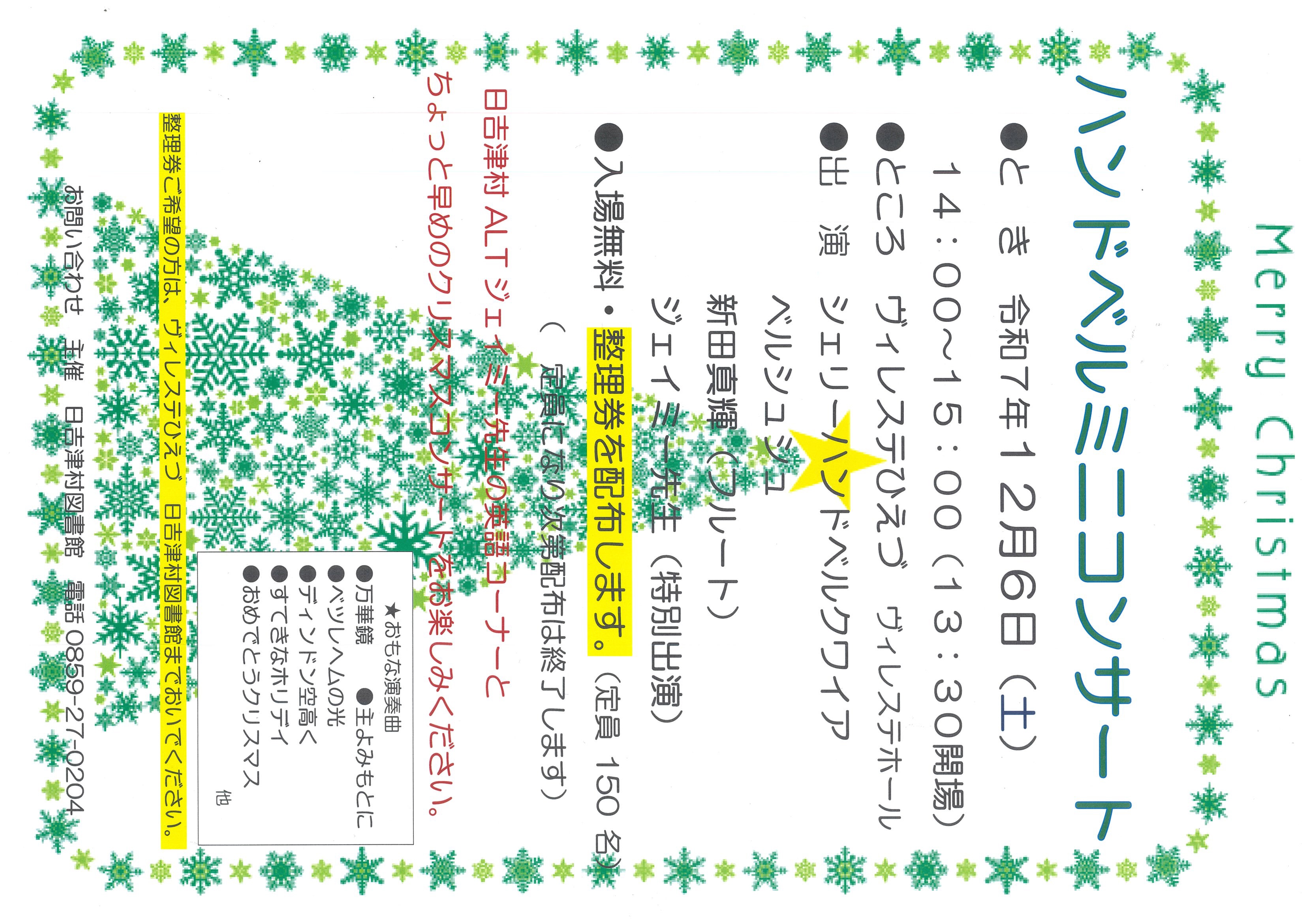 今年も少し早めのクリスマスをハンドベルの音色とともにお楽しみください。