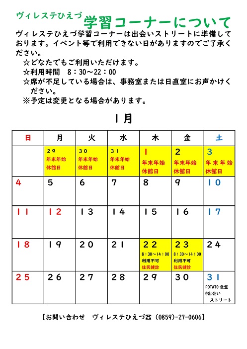 【12月29日(月)~1月3日(土)は年末年始の休館日です】