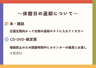 破損防止のため開館時間中にカウンターの職員にお渡しください