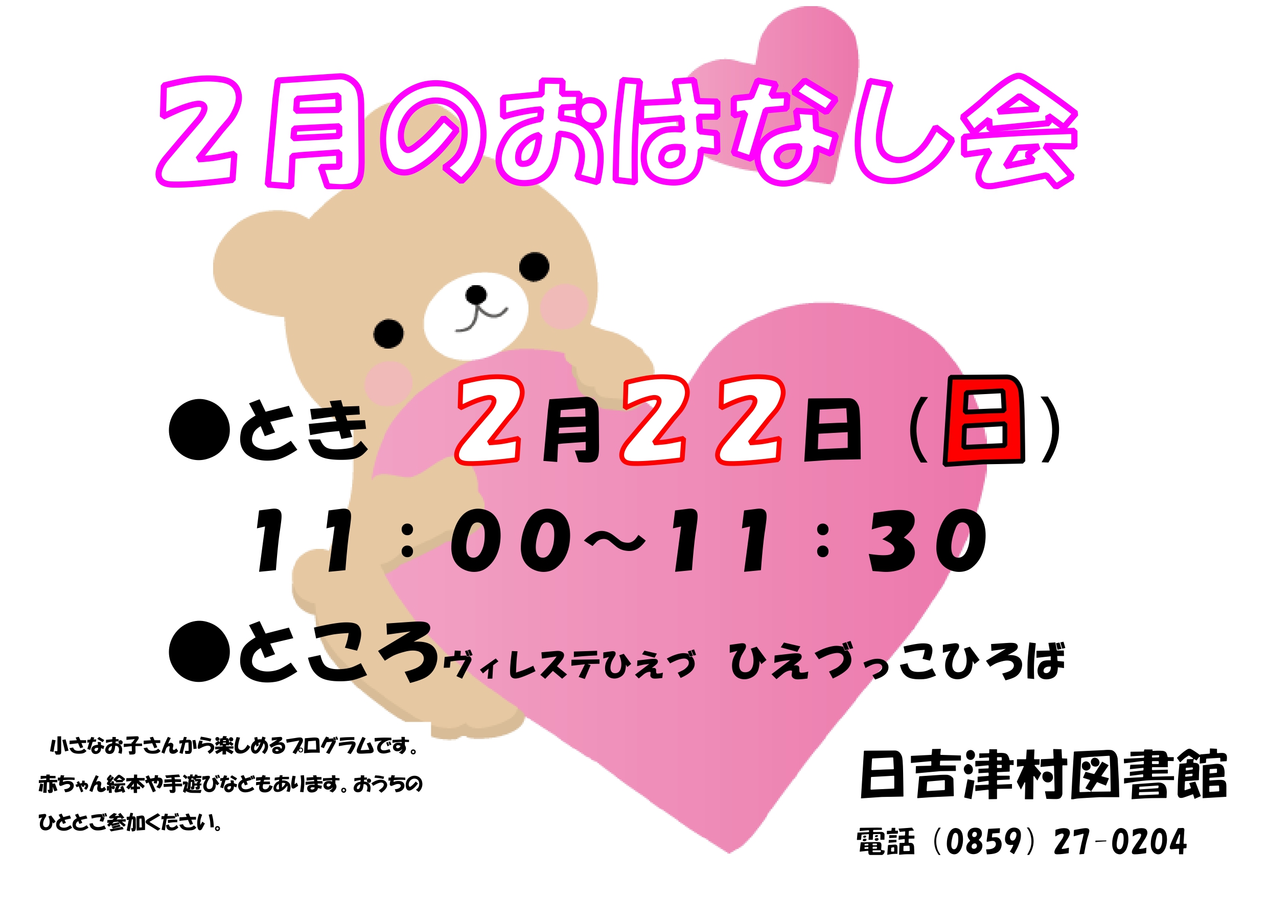 2月のおはなし会は、読み聞かせボランティアさんと職員でおこないます!